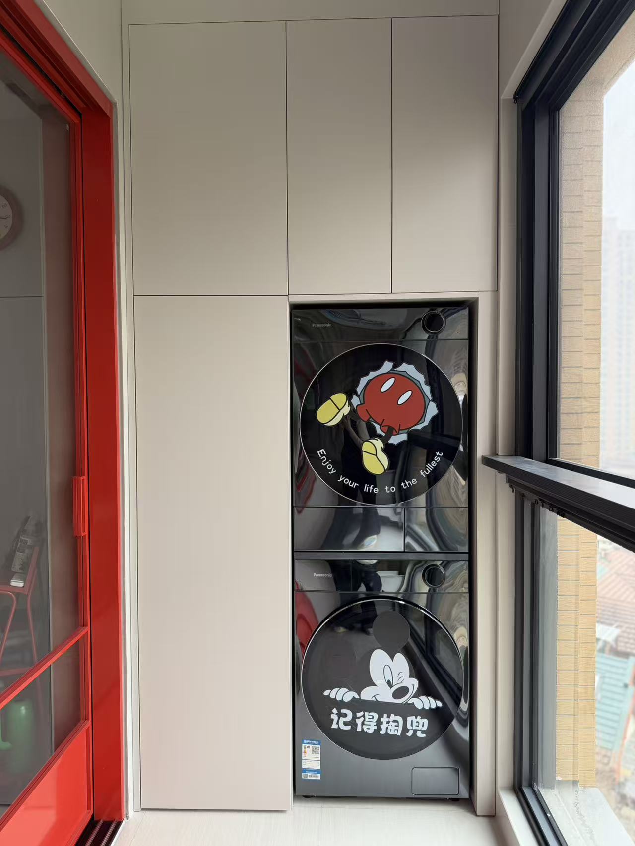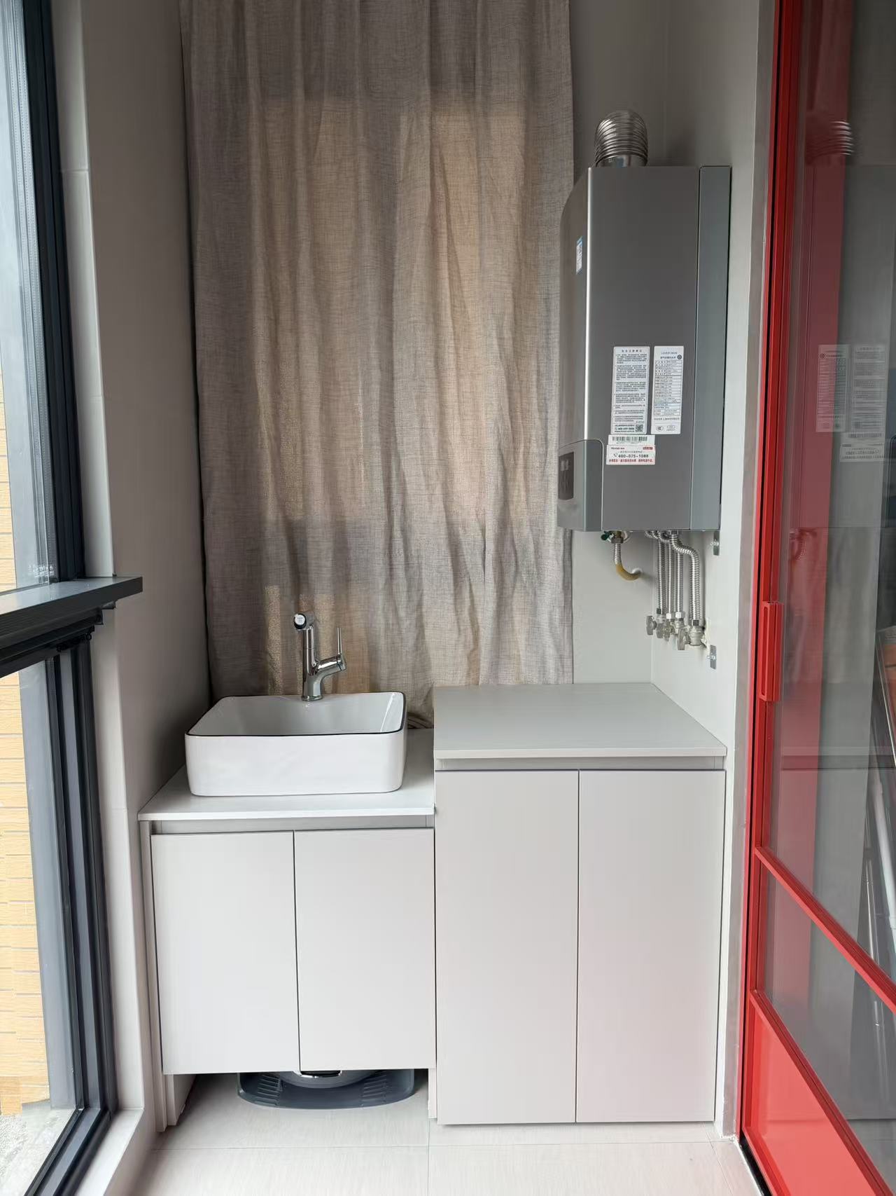 2026年3.19号刚完工的两组柜子,一组带水池放小的翻盖洗衣机,另外一组是双击叠放储物柜,全用全铝材质完成。